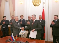 Беларусь и Россия подписали Соглашение о сотрудничестве в области обеспечения санитарно-эпидемиологического благополучия населения. Глава Минздрава Беларуси Василий Жарко и руководитель Роспотребнадзора Геннадий Онищенко договорились развивать сотрудничество в сфере предупреждения распространения на территории Союзного государства инфекционных и массовых неинфекционных болезней, недопущения ввоза и оборота опасных для жизни и здоровья человека товаров.