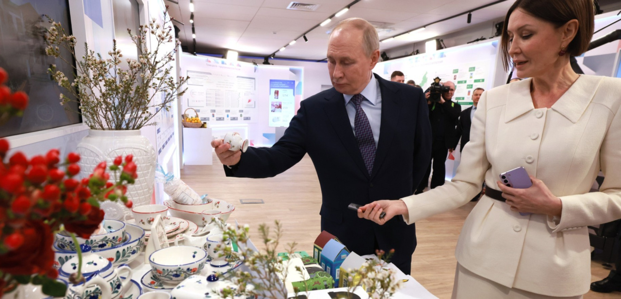 На другом стенде главу государства заинтересовала суздальская керамика. Оказалось, что производство наладил владелец колбасных заводом Вадим Дымов.