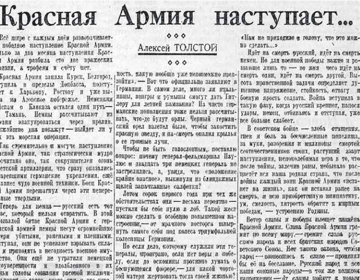 А эта статья вышла 12 февраля 1943-го, и Алексей Толстой уже многое знал о гитлеровцах и их союзниках.