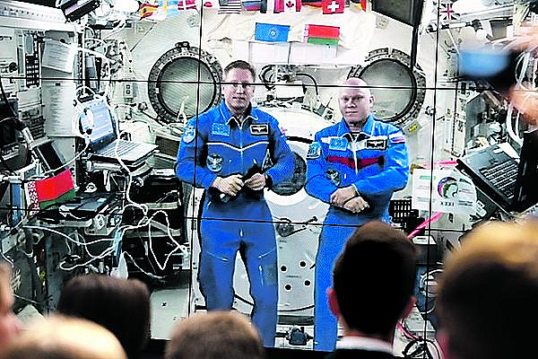 В открытом уроке поучаствовали «небожители» с МКС – Сергей Прокопьев и Олег Артемьев. Фото: БЕЛТА