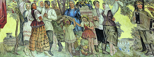 - Авторов первоначальной росписи мы не искали - шестьдесят лет ведь прошло. Хотя по опыту могу сказать, что тогда, в начале пятидесятых, над фреской работали два человека: мужчина и женщина. Это чувствуется по манере письма. У женщин она мягче, теплее.