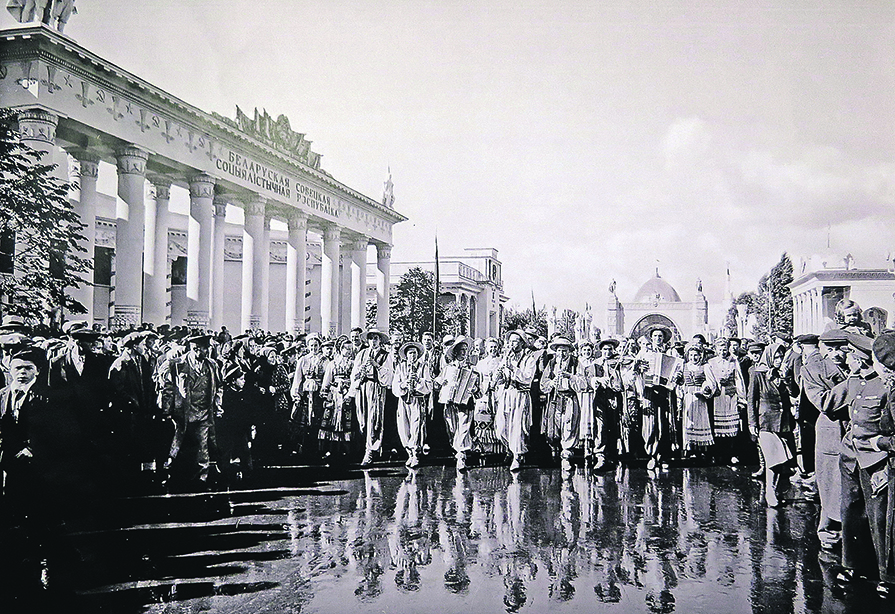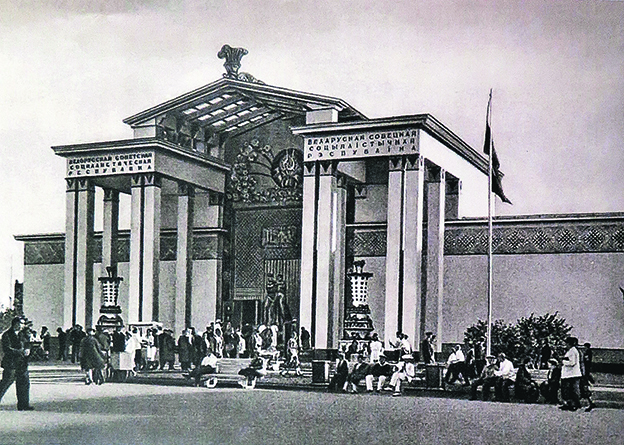 Белорусский павильон на ВДНХ, построенный в 1937 году еще как деревянное здание, изначально был объединенным - «Белорусской ССР, Западной, Калининской, Ивановской, Ярославской областей». А полностью белорусским стал через год. С началом Великой Отечественной войны и до 1949 года, как и вся ВДНХ, был закрыт. Новое здание выстроено уже в камне в 1954 году.
