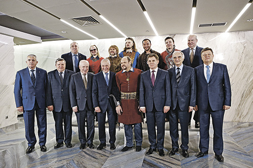 Совместное фото с современными «Песнярами» после концерта. В первом ряду в центре - нынешний руководитель ансамбля Вячеслав Шарапов, рядом с ним - Госсекретарь Союзного государства Григорий Рапота, председатель Исполкома СНГ Сергей Лебедев, посол Беларуси в России Игорь Петришенко, посол Азербайджана в России Полад Бюльбюль-оглы, Ответственный секретарь Парламентского Собрания Союза Беларуси и России Сергей Стрельченко, посол Армении в России Олег Есаян, заместитель председателя Комиссии ПС по информационной политике Франц Клинцевич (крайний слева во втором ряду)
