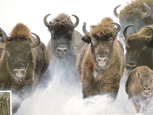 Зубр в Полесском радиационном заповеднике. Животных завезли сюда после чернобыльской аварии. И чувствуют они себя без человека прекрасно. Летом ведут очень скрытый образ жизни, а вот зимой все-таки выходят на подкормочные площадки. Кстати, не так давно на территории заповедника появились и лошади Пржевальского. Пришли с территории Украины, куда были завезены в девяностых годах. Так что зверей в Беларуси стало больше на один вид!