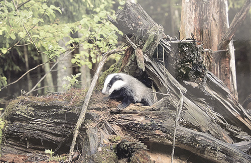 Что там, за пнем? Молодой барсук обследует территорию вокруг норы. Полесский радиационный заповедник.