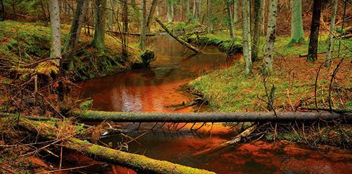 - Национальный парк «Браславские озера» славится своими озерами, но есть на его территории и красивые речки. Окменица - самая живописная из них. Эта заводь очень необычна - здесь глина красного цвета, она и создает иллюзию кровавой реки. Глубина речки здесь всего сантиметров пять.