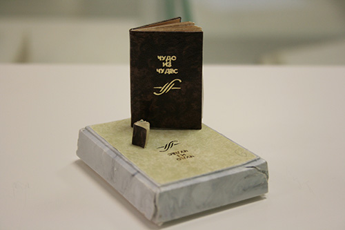 Советская микрокнига «Чудо из чудес» с цитатами из русских классиков. По размерам она как SIM-карта для мобильников.