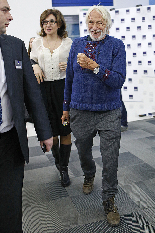 Москва. 3 февраля 2016. Пресс-конференция актера и режиссера Пьера Ришара, посвященной московской премьере моноспектакля "Пьер Ричард III" 4 февраля в Большом концертном зале "Космос".