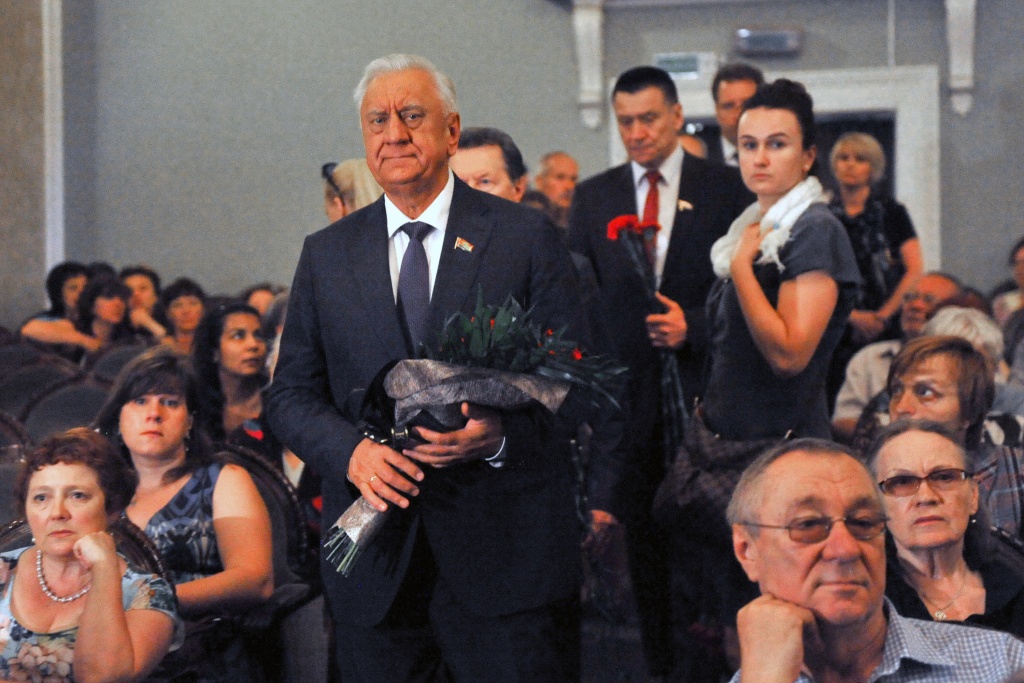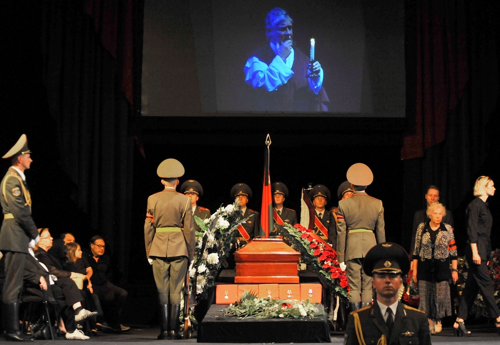 Председатель Совета Республики Национального собрания Белоруссии Михаил Мясникович (на первом плане) на церемонии прощания с актером Ростиславом Янковским в драматическом театре им. М.Горького. Виктор Драчев/ТАСС