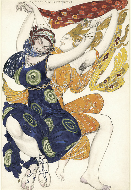 Для "Русских балетов" Дягилева художник создал десятки нарядов в древнегреческом стиле. На фото - эскиз костюмов двух Беотиек к балету "Нарцисс". Фото: пресс-служба ГМИИ имени Пушкина