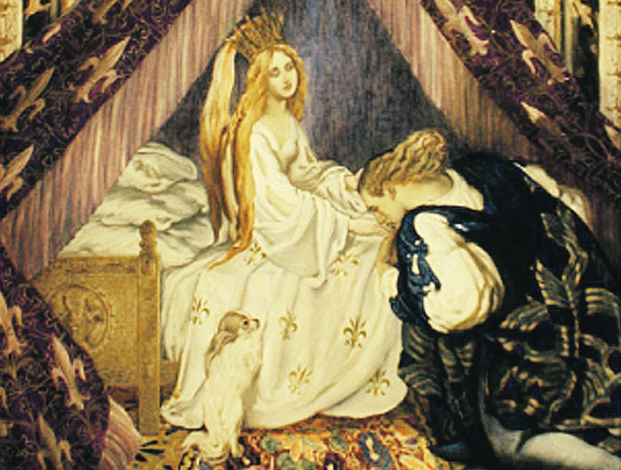 Для династии Ротшильдов живописец написал семь панно: позировала вся семья, включая четвероногого питомца Дороти. Фрагмент картины "Пробуждение" по мотивам сказки "Спящая красавица"