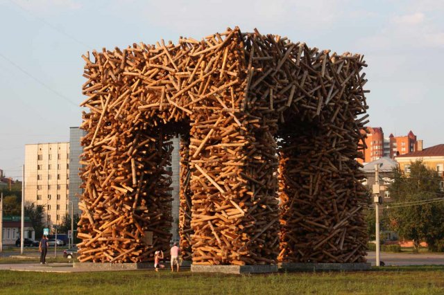 А вот в Перми любимая буква алфавита, как нетрудно догадаться, именно та, с которой начинается название города. Пять лет назад там появилось необычное строение, вызвавшее у жителей гамму противоречивых чувств – о восхищения до неодобрения тех, кто близко к сердцу воспринимает покушение на природные богатства. Дело в том, что «Пермские ворота» - так называется объемная четырехгранная арка в виде букв «П» - выполнены из 5200 еловых бревен. Необычный арт-объект установлен недалеко от железнодорожного вокзала в саду камней. Придумал монумент известный художник Николай Полисский, а прославил памятник дизайнер Артемий Лебедев. По задумке автора, в этой скульптурной композиции заложен «глубокий смысл». Какой? Оказывается, это символ традиционного для Перми занятия – лесной промышленности, память всем рабочим-лесорубам. «Пермские ворота» не всем нравятся, они нередко подвергаются нападкам со стороны радикально настроенных к современному искусству граждан, более того, однажды его даже пытались поджечь.
