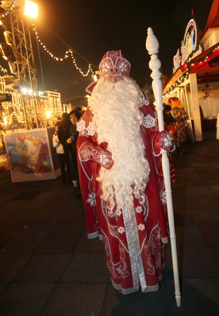 С древних дохристианских времен у славян Дед Мороз был божественным повелителем зимней стужи, снега и ветра, замерзших рек и снежных сугробов. Изначально его представляли как могучего старика огромного роста с длинной седой бородой. Воспринимался как могущественный волшебник с суровым характером. В гардеробе Деда Мороза долгополые шубы трех цветов: белая, синяя и красная, на седовласой голове боярская шапка, украшенная разноцветными кристаллами, в руках он держит посох и мешок с подарками. По старой традиции передвигается он на тройке великолепных белых лошадей, символизирующих три зимних месяца.