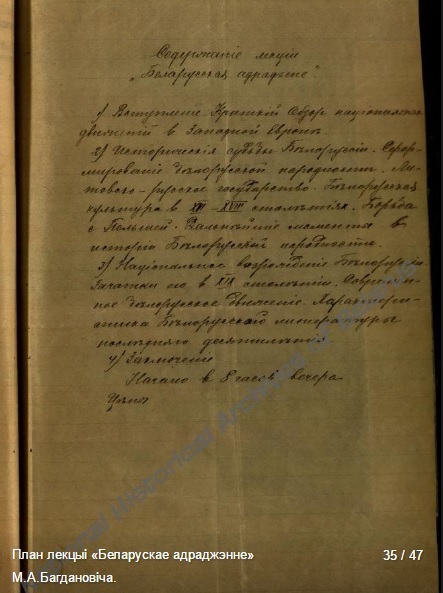 План лекции "Белорусское возрождение" М.А. Богдановича.