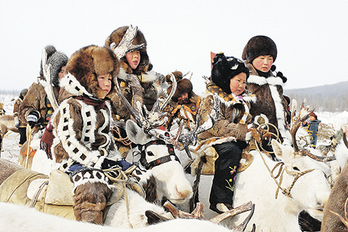 Юрий Коковин. В конце февраля в селе Иенгра (Республика Саха, Якутия) проводится ежегодный День оленевода. Жители к этому событию готовятся заранее: шьют костюмы из шкур и меха добытых зверей, мастерят парадную упряжь на оленей. А в день праздника устраивают игры: соревнуются в езде на оленях, прыжках через нарты (длинные узкие сани) и стрельбе из пневматической винтовки. Участвуют даже дети.