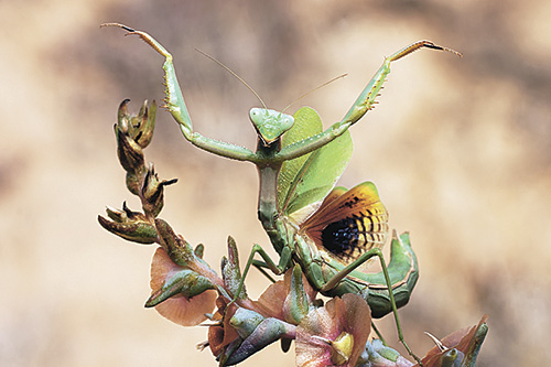 Станислав Шинкаренко. Самка пятнистокрылого богомола демонстрирует позу угрозы! Уже испугались?