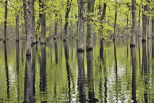 Завораживающая картина разлива, когда кругом до самого горизонта - водная гладь. Только лодки с дедом Мазаем и его ушастыми пассажирами не хватает.