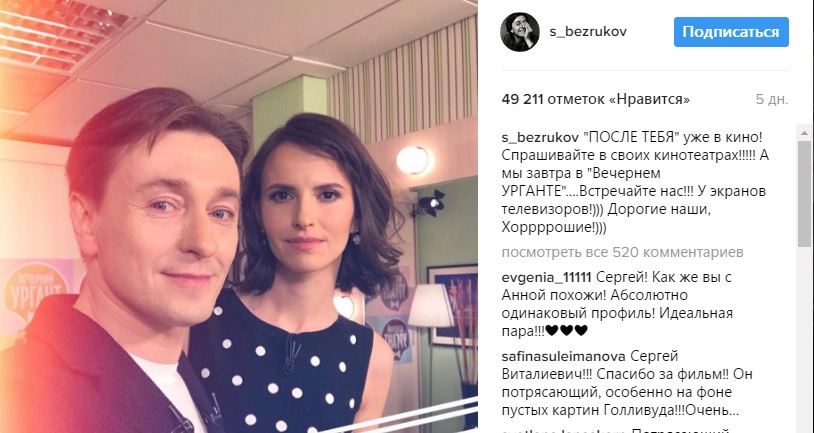 Сергей Безруков с женой, режиссером Анной Матисон. Фото: www.instagram.com/s_bezrukov/