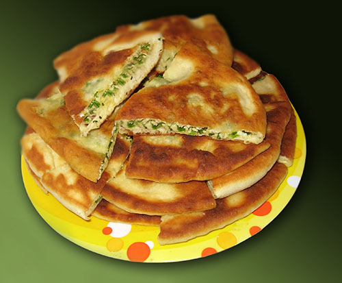 Лепим плацинды так: тесто раскатываем в тонкие лепешки, начинку – на середину и закрываем лепешку. Обжариваем плацинды на разогретом масле, на среднем огне.