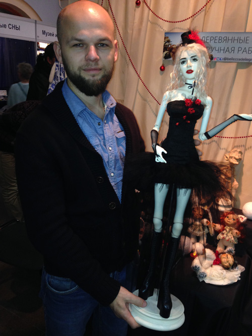 Ирина родом из Минска. Кукол начала мастерить лет семь назад, будучи в декретном отпуске. Хотелось самой сшить для дочери первую игрушку. А потом вошла во вкус. Придумала три авторские выкройки и теперь пользуется только ими. На выставку привезла коллекцию текстильных марионеток «на веревочках». В Москву они приехали из Парижа. Там в третий раз участвовали в международном салоне кукол. Модели шли по подиуму и держали марионеток в руках.