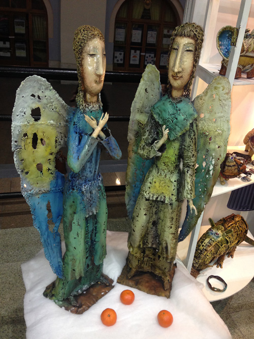 Стенд белорусов расположился скромно, в уголке, но поток посетителей к нему не иссякал. Известный минский дизайнер одежды Ирина Сазанович и мастер по дереву Евгений Лукашевич волею судьбы стали не только родственниками, но и коллегами.