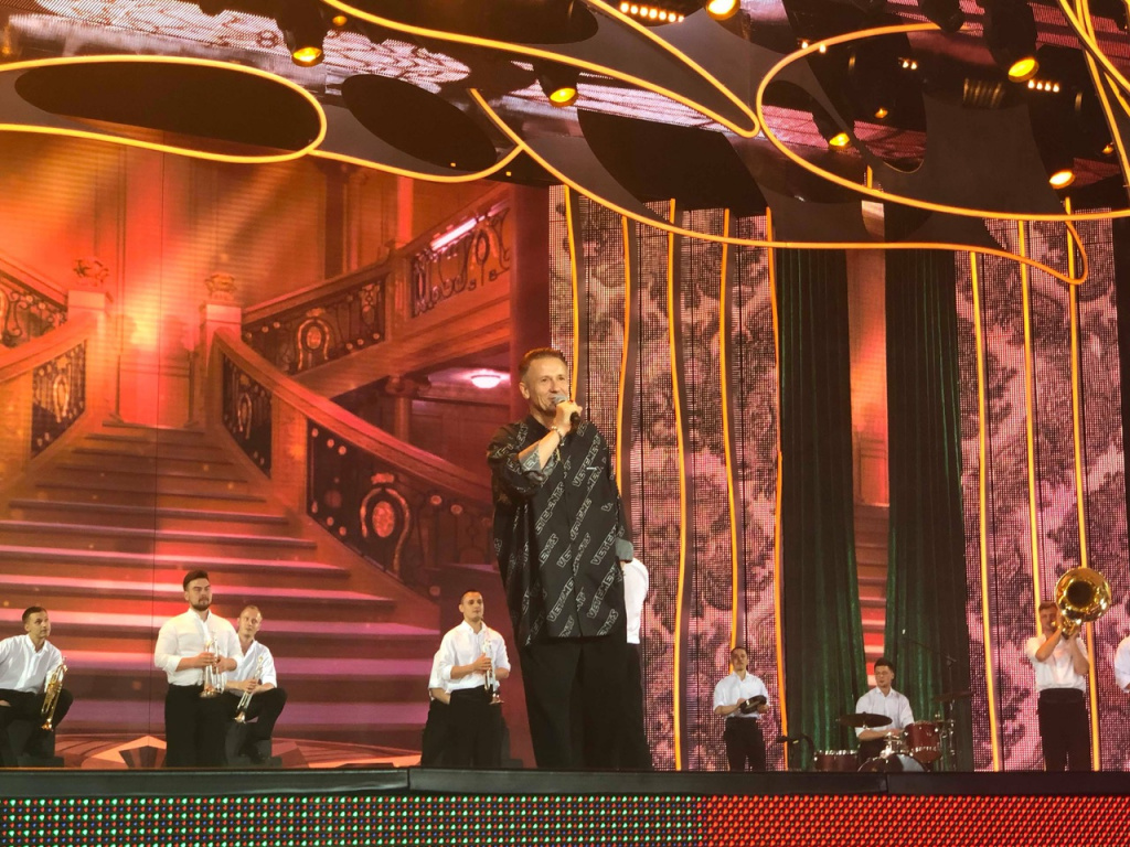 Поднимались в VIP-ложу к президенту и Николай Басков. А после выступления, он даже стал на колено перед зрителями и… поцеловал сцену.