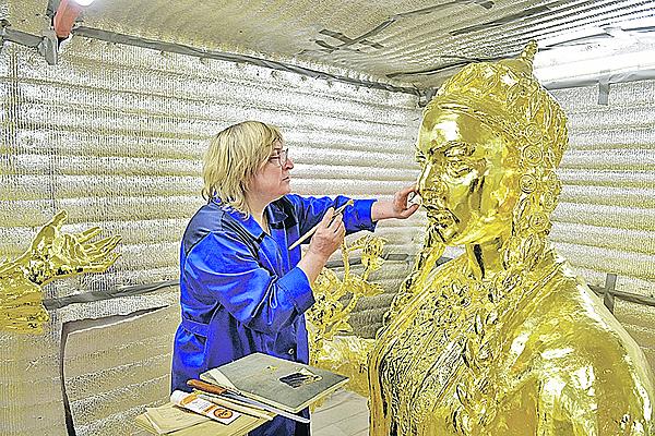 Реставраторы работали, как ювелиры. Восстанавливали мельчайшие элементы декора. На золочение статуй ушло несколько килограммов червонного золота. Фото: Михаил ФРОЛОВ/kpmedia.ru