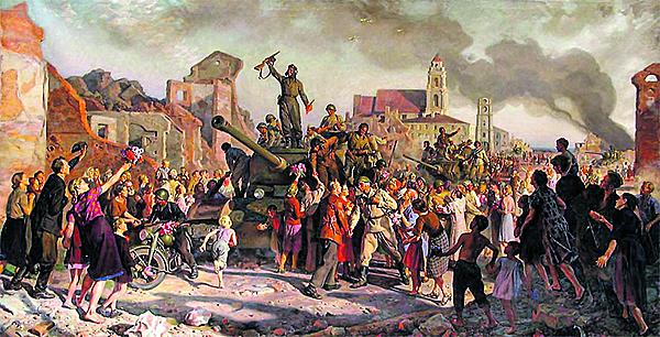 Волков перенес на холст один из самых эмоциональных моментов в истории Беларуси. И к работе над сюжетом приступил, когда земля только-только начала остывать после разрывов снарядов - в 1945-м.