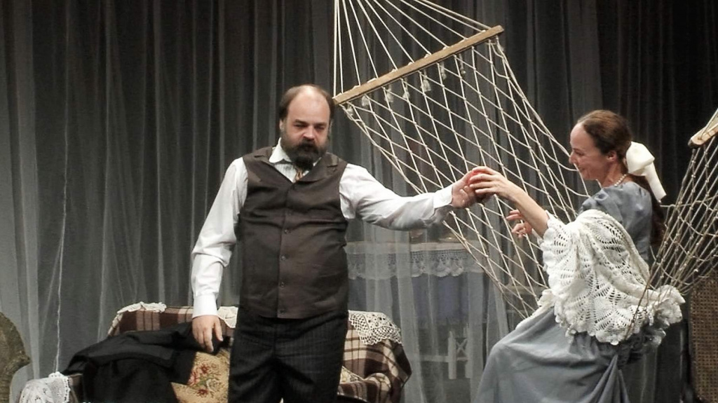 Этот спектакль, очень бережный по отношению к классику, открывает в произведении совершенно новые грани. Здесь и переливы света, и «разомкнутость» пространства, и легкая грусть, и поэзия ушедшего мира русской усадьбы — чеховский импрессионизм, и, конечно, юмор. Собственно сюжет пьесы — аферы с векселями — подается остро, подчас гротескно. Современные ассоциации не подчеркиваются режиссером, они приходят сами собой.