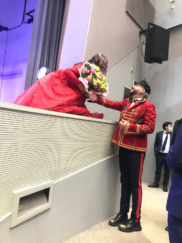 И при этом на сцене вживую выступает Президентский оркестр Беларуси под управлением Виталия Кульбакова.