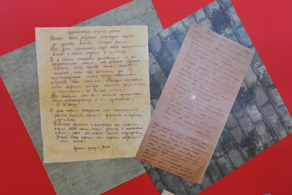 Вторая часть выставки – история восстановления Брестской крепости на средства Союзного государства: тут и современная подсветка, старая не менялась много десятилетий, и возродившаяся полубашня Юго-Восточной казармы, где сейчас открыли новый музей, восстановленные Восточный и Пятый форт цитадели. Рядом с фото – стенды с армейскими треугольничками защитников Брестской крепости, написанные родным: «Дорогая Маша, меня не покидает надежда, что скоро мы будем вместе. Я так часто стал думать о тебе…» «Здравствуй, милая дочка! Я потерял ориентацию и не представляю, какая ты сейчас. Одним словом, могу верить маме, которая пишет, что ты большая…»