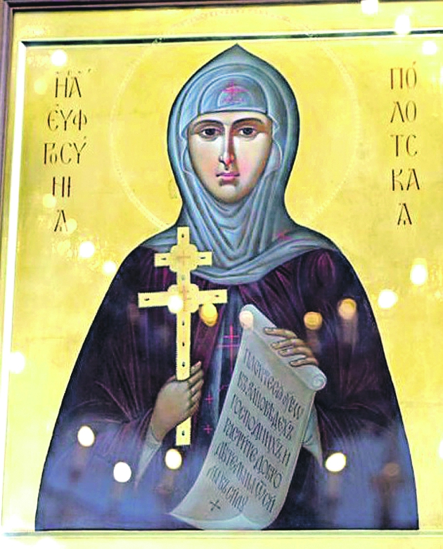 Евфросинья Полоцкая стала первой белорусской женщиной, которую причислил к лику святых. Себя, свои таланты и силы она посвятила служению Богу и Церкви, заботясь об открытии школ и библиотек, развитии зодчества, переписывании книг. В преклонном возрасте Евфросинья Полоцкая отправилась в пешее паломничество в Иерусалим, где и скончалась. Сегодня ее нетленные мощи находятся в самом большом храме обители — пятикупольном Кресто‐Воздвиженском соборе.