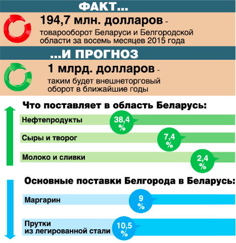 Несмотря на нынешний спад, лучше всего отношения Беларуси и Белгородчины отражает слово «динамично». Именно так вырос объем взаимной торговли - за 15 лет практически в десять раз и превысил 270 миллионов долларов.