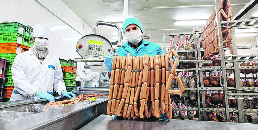 Кумпячки, шпикачки, полендвица, рулеты, копченые цыплята, сосиски... Агрокомбинат выдает в день до сорока тонн мясной продукции