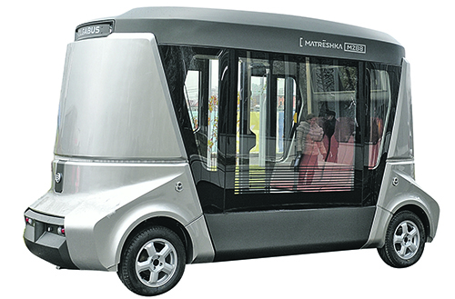 Российский беспилотный автобус «MatrЁshka» собирают на производственных площадках в Волгограде и Владимире. Он может перевозить до восьми человек со скоростью 30 км/ч. Без водителя.