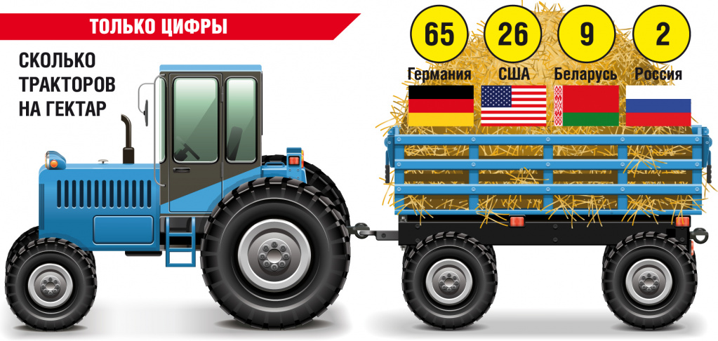 Машины хорошо покупают и в самой Синеокой. В Беларуси на тысячу гектаров пашни приходится 9,3 трактора.