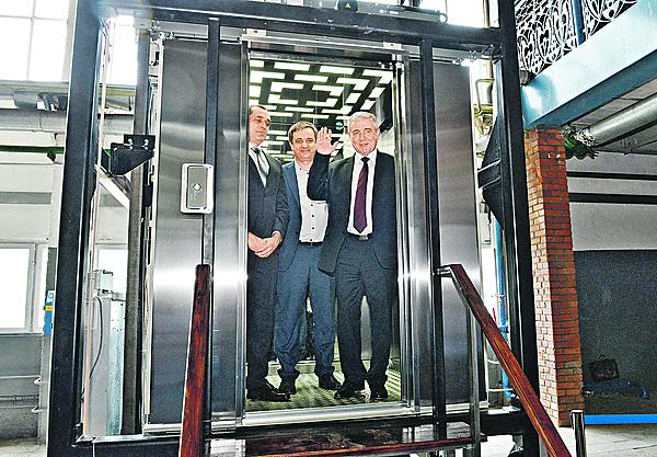 Посол РБ в РФ Владимир Семашко (справа) на презентации совместного производства инновационных лифтов в Москве. Фото: БЕЛТА