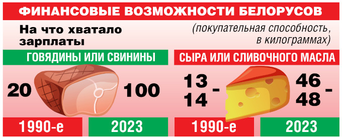 - Я сейчас буду называть цифры не наши, их. Знаю, какая будет реакция на этот тезис. Некоторые понапишут, что за тридцать лет в десять раз - это не так уж много. Но подчеркну: реальные доходы, подкрепленные реальными возможностями покупать, сберегать, отдыхать. Да, можно много рассказывать о том, как в годы становления суверенной Беларуси мы питались картошкой и хлебом. Мясо и рыба были праздничными блюдами. Бананы и мандарины вообще видели раз в год. А теперь?.. «Бедно» живем. Я понимаю, что тех, кто не видел той жизни, кто родился в благополучии, такой экскурс в историю не трогает. И это хорошо! Мы не просто преодолели свалившиеся на наши плечи трудности. Мы сделали это быстро и качественно - так, что поколение «тридцать плюс» сегодня уверено, что белорусы всегда жили точно так, как сейчас. Да нам в радость, что у них такая жизнь. Для этого мы и работали.