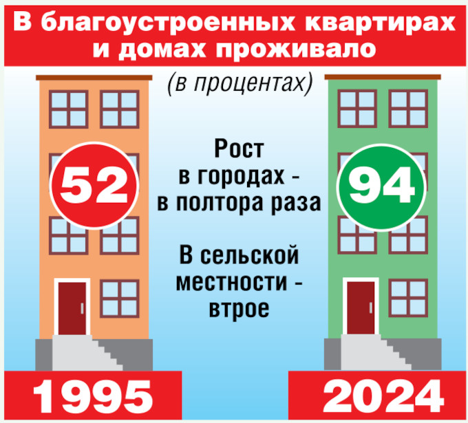 - Почти миллион семей (миллион семей!) улучшили жилье за эти годы. Сотни тысяч квартир построены с государственной поддержкой. Комфортные и современные. Доля семей, указавших на удовлетворенность своими жилищными условиями, составляет почти 90 процентов. А кто-то вообще начал жить с размахом.