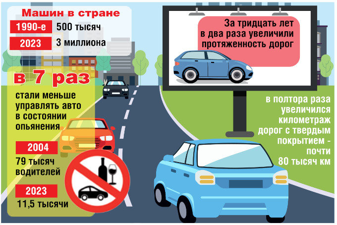 - По нашим дорогам перемещаться стало безопаснее. С 1990 по 2023 год практически в три раза снизилось количество дорожно-транспортных происшествий. Хотя количество автомобилей и бездумно сидящих за рулем увеличилось значительно.