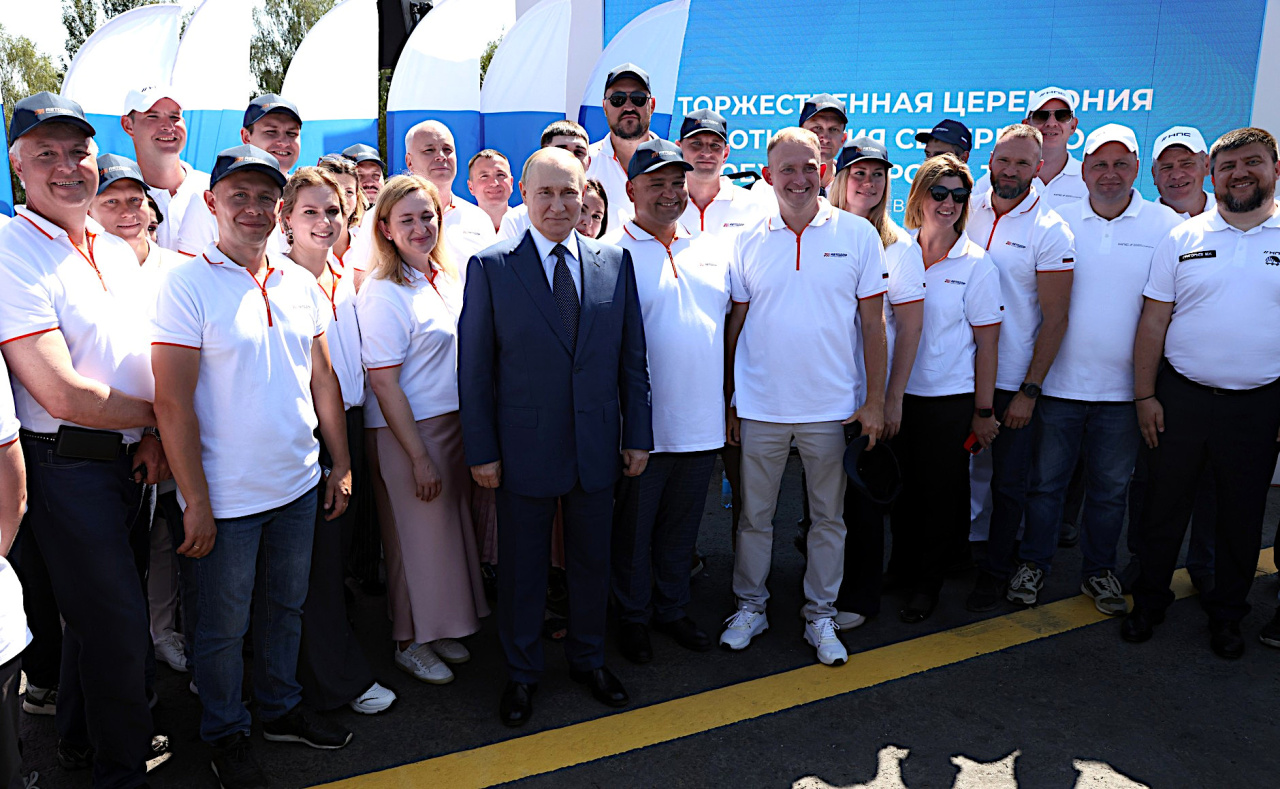 Владимир Путин сфотографировался с участниками церемонии открытия северного обхода города Твери трассы М-11 «Нева» и обхода города Тольятти.