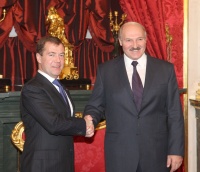 9 декабря. Москва. Встреча Президента России Дмитрия Медведева и Президента Беларуси Александра Лукашенко перед заседаниями Высшего органа Таможенного союза и Межгосударственного совета Евразийского экономического сообщества.