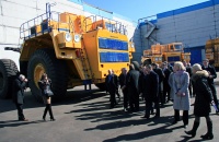 – Сейчас мы начали реализовывать и абсолютно инновационный проект по сборке карьерного самосвала грузоподъемностью 450 тонн. Это будет самая большая машина в мире. Уже в нынешнем году самосвал примет участие в специализированной выставке в Лас-Вегасе в США, а в следующем пройдут его испытания в реальных рабочих условиях – в карьерах Кемеровской области, – поделился планами генеральный директор ОАО «БелАЗ» Петр Пархомчик.