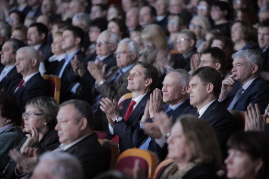 Перед началом праздничной программы Председатель Совета Республики Национального собрания Беларуси Анатолий Рубинов огласил гостям приветствие президента Александра Лукашенко, а заместитель Председателя Парламентского Собрания Союза Беларуси и России Александр Торшин озвучил приветствие главы российского государства Владимира Путина.