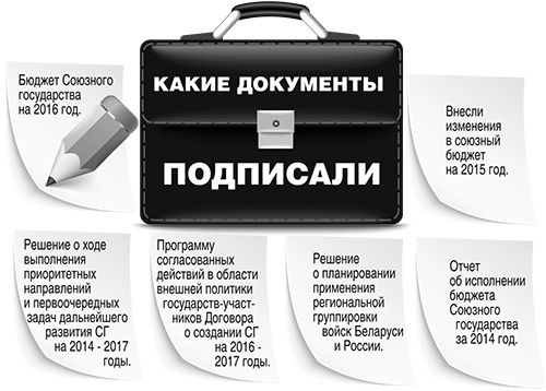 Лукашенко подтвердил, что Госсовет принял бюджет Союзного государства на 2016 год, и даже в непростой ситуации он сохранен в размере более шести миллиардов российских рублей. Значительная часть этих средств пойдет на союзные программы.