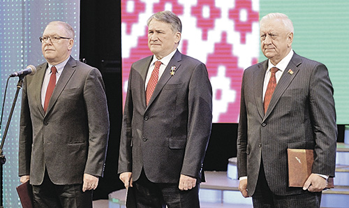 Участников праздника в Минске приветствовали заместитель Председателя Госдумы РФ Александр Романович, заместитель Председателя Парламентского Собрания Юрий Воробьев и Председатель Совета Республики Национального собрания Беларуси Михаил Мясникович. Фото: Виталий Пивоварчик.