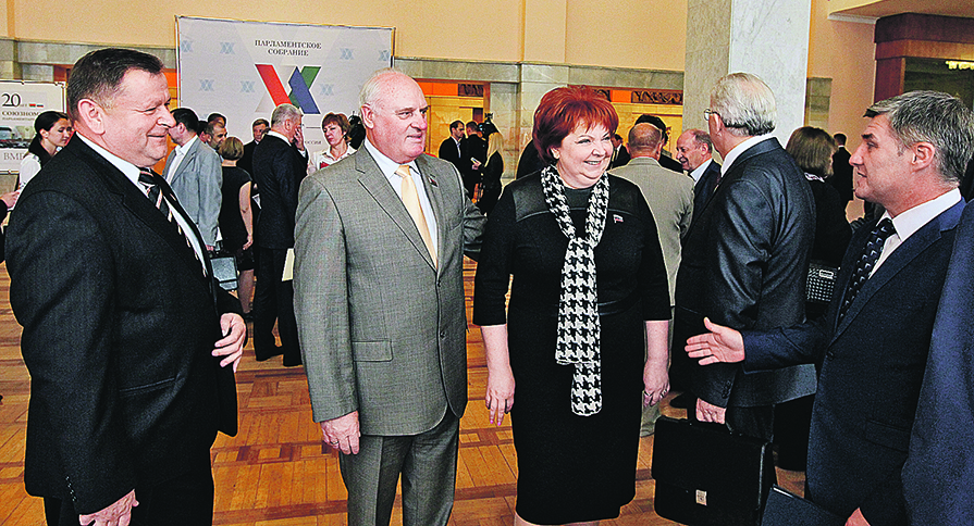 У депутатов (слева направо) Петра Шостака, Александра Попкова и Светланы Максимовой много общих тем для разговора. Фото: belrus.ru