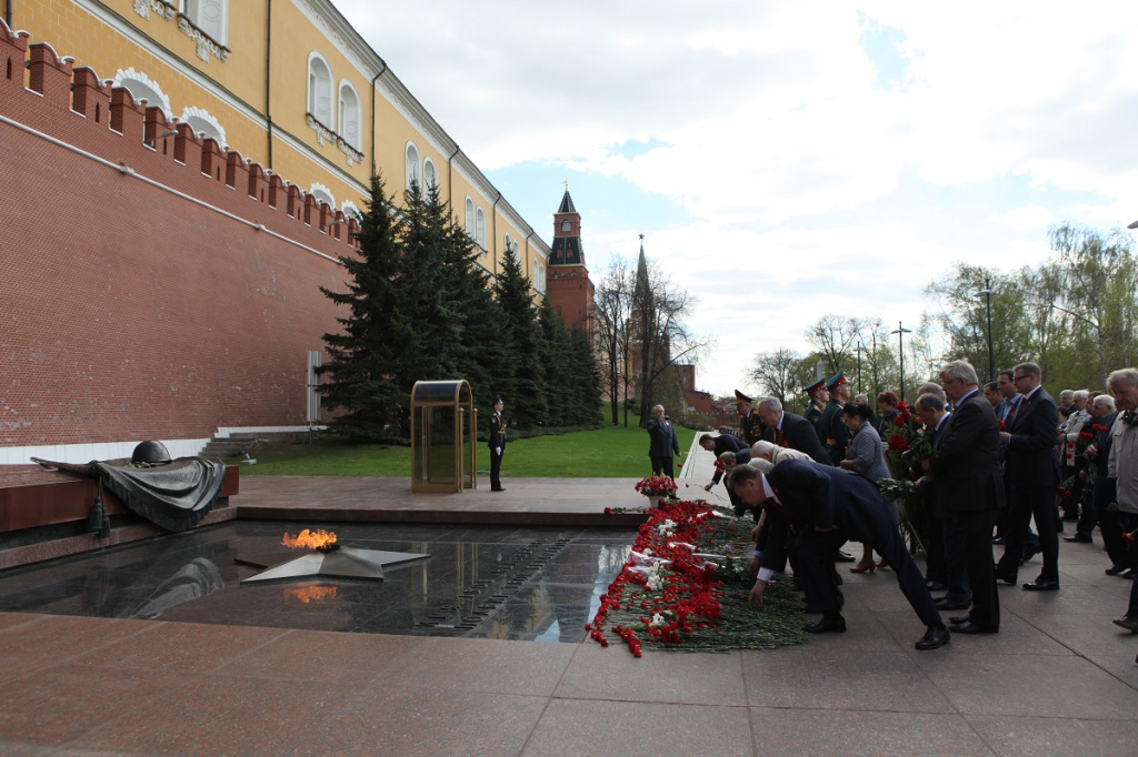 4 мая прошла церемония возложения венка от белорусского посольства в России к Могиле Неизвестного солдата у Кремлевской стены и цветов к памятным знакам «Город-герой Минск» и «Брестская крепость-герой».