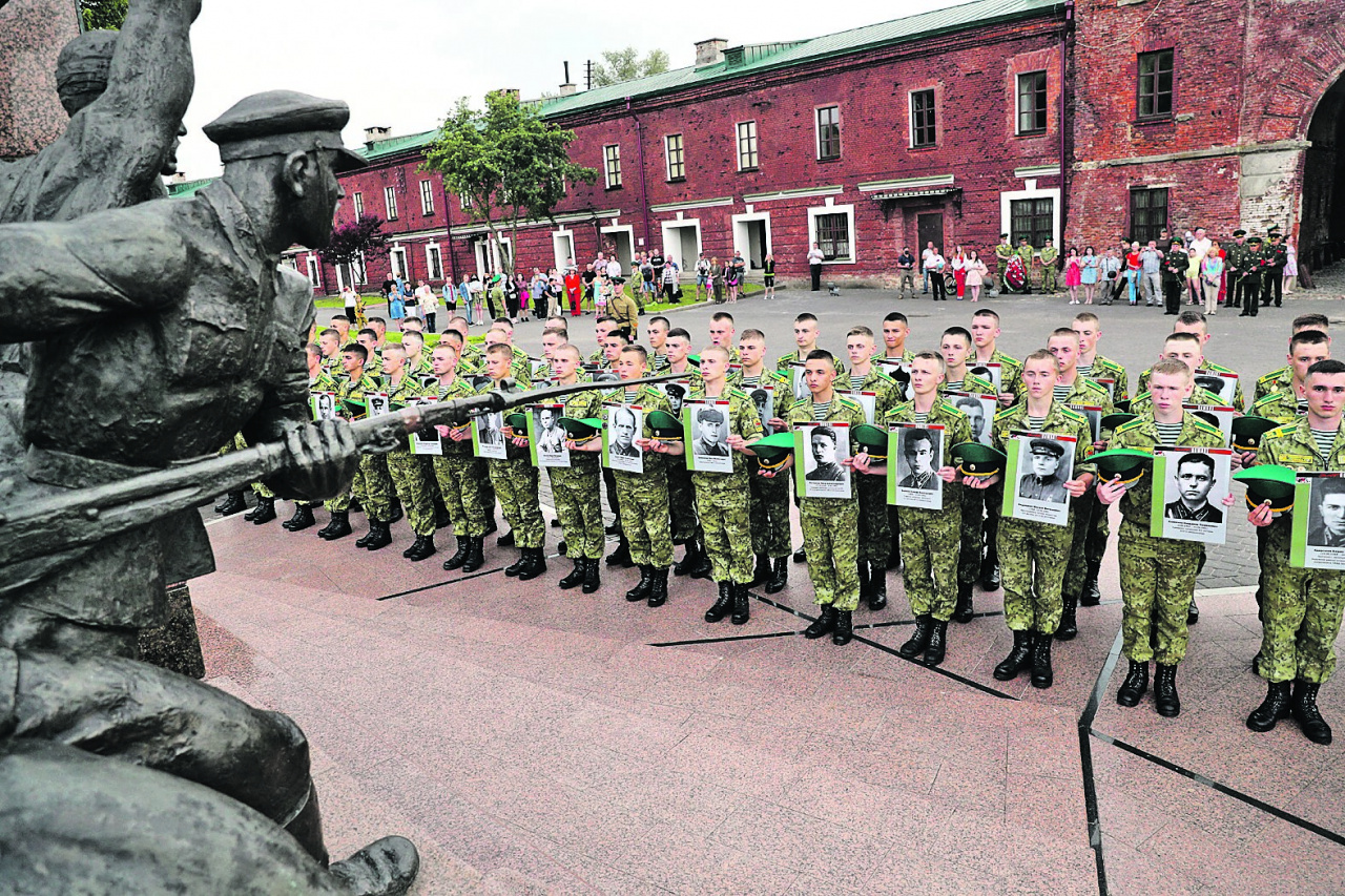 В день начала войны у скульптурной композиции «Героям границы» в брестской цитадели вспомнили героев, которые первыми приняли бой с немецкими войсками в июне 1941-го. Фото: БЕЛТА