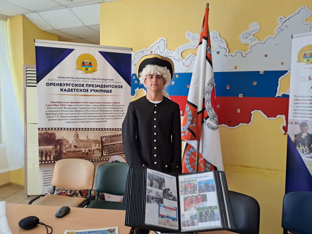 На стенде Оренбургского президентского кадетского училища (первого в стране такого рода) меня встречал… основатель города Иван Неплюев. В парике и кафтане из прошлого. Не зря же смена проходит под девизом «Историческая память поколений».